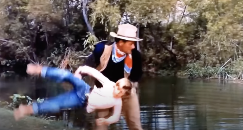 This phobia tends to be a source of shame so they will try wading into a pool on holiday but never leave the shallow water and always holding the wall. I wish i knew where this "meme" started. The John Wayne movie Hondo shows this exact scenario. I'm sure this has worked at times but i see enough men with the same story to know it is traumatic to many. It's a very toxic behaviour and an obvious bullying behaviour that i have heard from around Europe, North and South America and India. Thankfully this behaviour has not reached Africa to my knowledge.